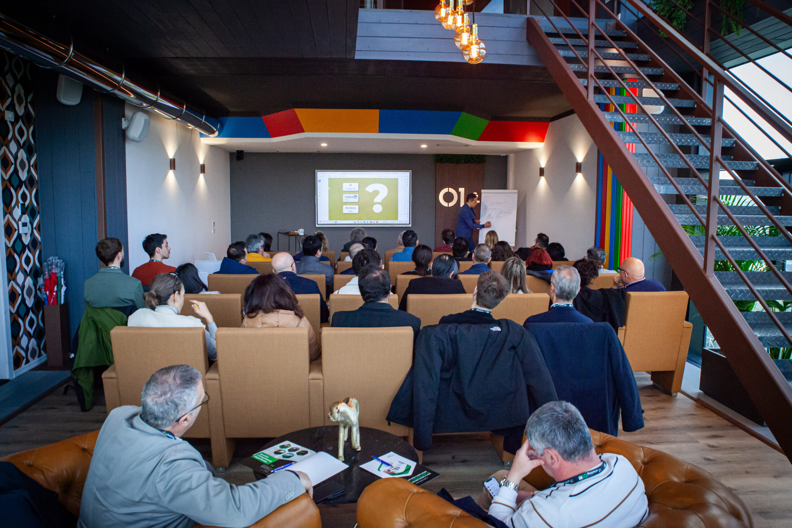 Spazio professionale all’interno della sede Marketing 01, progettato per eventi aziendali, formazione, presentazioni e dirette streaming.